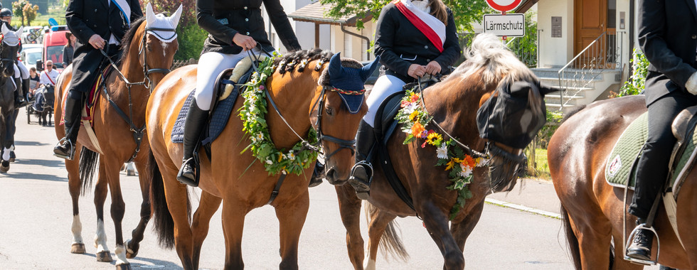 sowie auch einige Traktor-Oltimer gesegnet. Die Reiterprozession zog bei blauen Himmel und strahlenden Sonnschein viele Zuschauer an. Mit dabei waren neben den Reitern aus der Region die Stadtgarde Weingarten in Uniform sowie der Eulogiusverein Aftholderberg. Auch die Musikkapelle Bingen-Hitzkofen