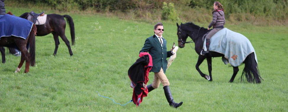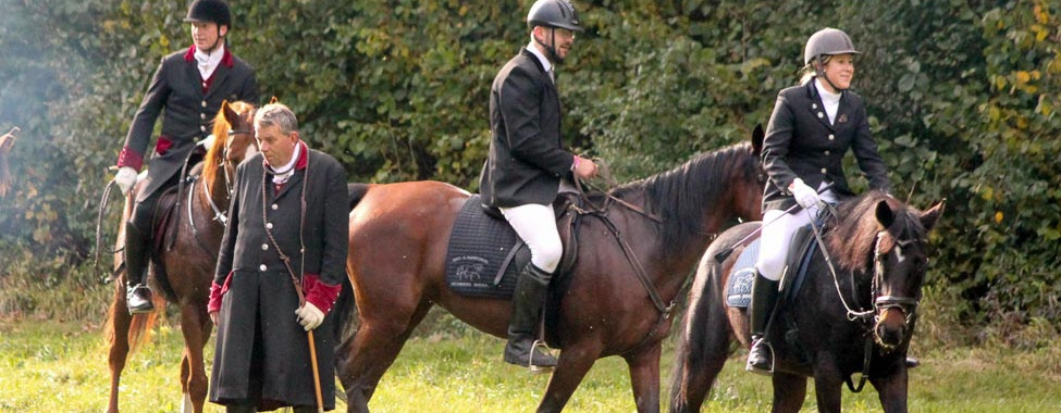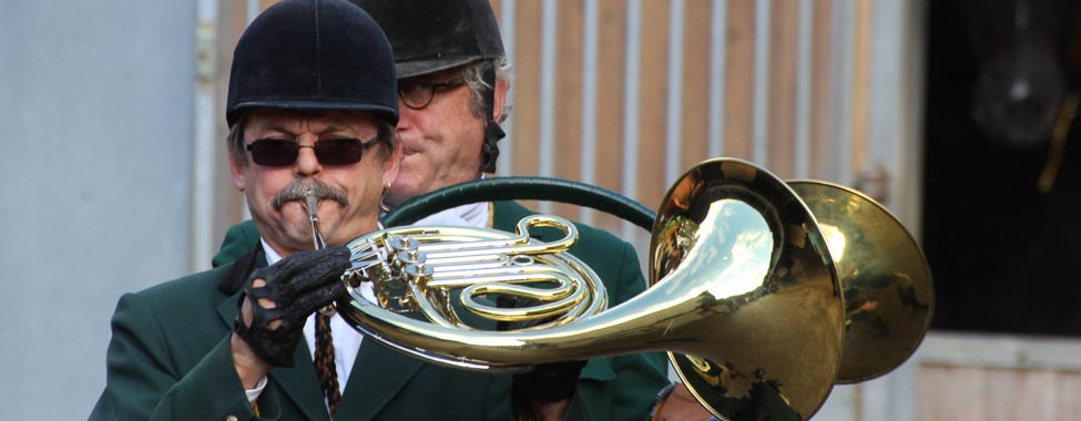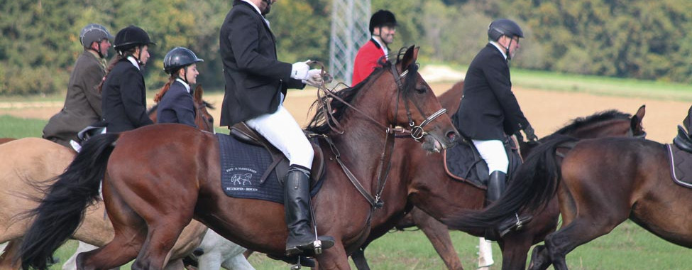 Mal wieder hatte der Reit - und Fahrverein e.V. Hitzkofen – Bingen am Sonntag, den 13. Oktober 2013 bei der alljährlichen Schleppjagd zu Pferde hinter der Hundemeute des Süddeutschen Hunting Clubs (SHC) glück mit dem Wetter. Nach vielen Regentagen bis in die Nacht vor dem Sonntag hinein waren die Bodenverhältnisse nicht ganz ideal. Jagdherr und Vorsitzender des Reit- und Fahrvereins Ralf Multurs bat daher beim Stell-Dich-Ein um Vorsicht und Rücksicht. Er konnte immerhin 24 Reiter begrüßen und noch mehr Zuschauer, die das Feld begleiteten. Auch Dr. Winfried Veitinger, Chef der Equipage (Hundeführer) und der Hundemeute und des SHC begrüßte die Anwesenden und bat auch um Rücksicht auf die Hunde. Leider finden die nicht immer auf Anhieb die Fährte, die durch einen Reiter mit einer bestimmten Flüssigkeit gelegt wird und könnten Angst bekommen, wenn die Pferde zu dicht kommen. Mit dem traditionellen Bügeltrunk tranken die Reiter auf eine „Gute Jagd“.